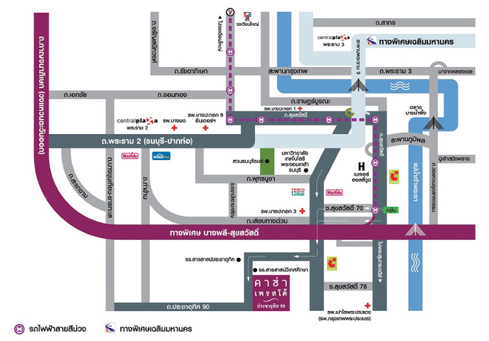 ใกล้ทางพิเศษบางพลี-สุขสวัสดิ์ และใกล้จุดขึ้น-ลงทางด่วนกาญจนาภิเษก (วงแหวนรอบนอกฝั่งใต้)